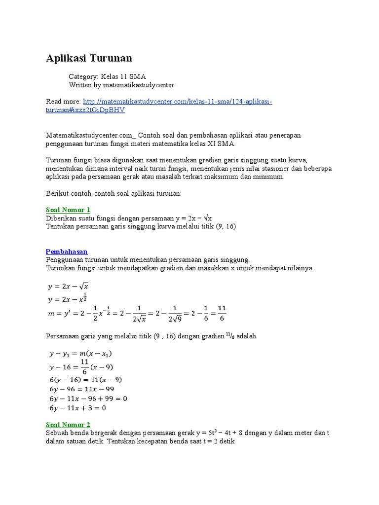 Matematika Dasar Aplikasi Turunan Dan Contoh Soal Wkwkpedia