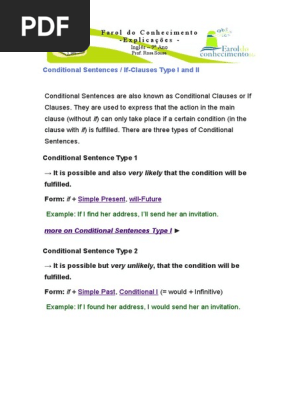 Conditional Sentences If Clauses Type I And Ii Sentence Linguistics Grammar